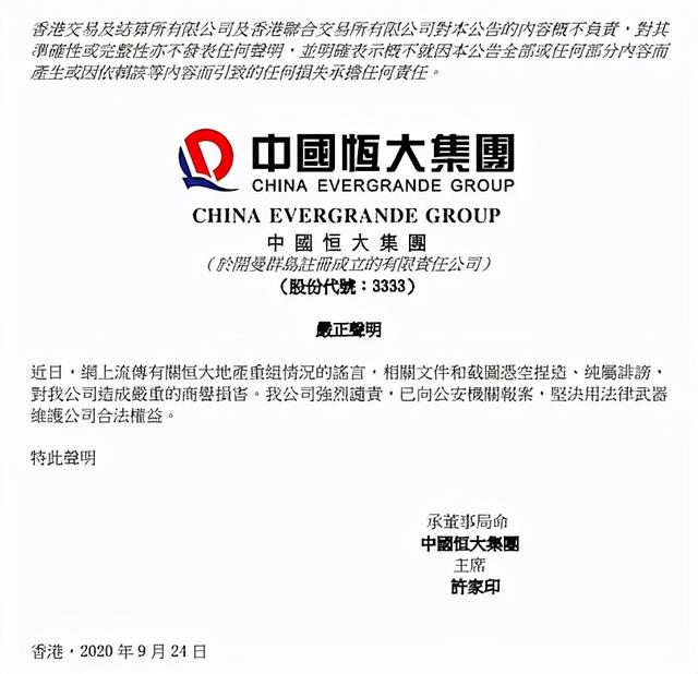 针对近期网络传言恒大集团迅速作出回应 9月13日晚间恒大集团在其官方网站发布声明称网络上近日出现的有关恒大破产重组的言论完全失实公司目前确实遇到了前所未有的困难但公司坚决履行企业主体责任全力以赴复工复产保交楼想尽一切办法恢复正常经营全力保障客户的. 恒大跌3暂连跌3日 遭银河联昌削八成二目标 09-02.